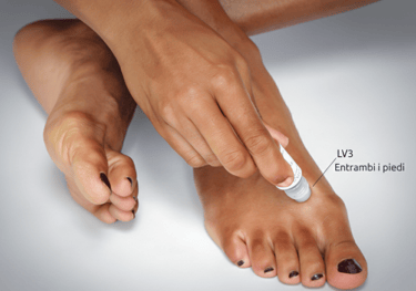 · LV 3 – Dorso del piede, tra alluce e secondo dito, circa un dito sopra lo spazio tra le dita