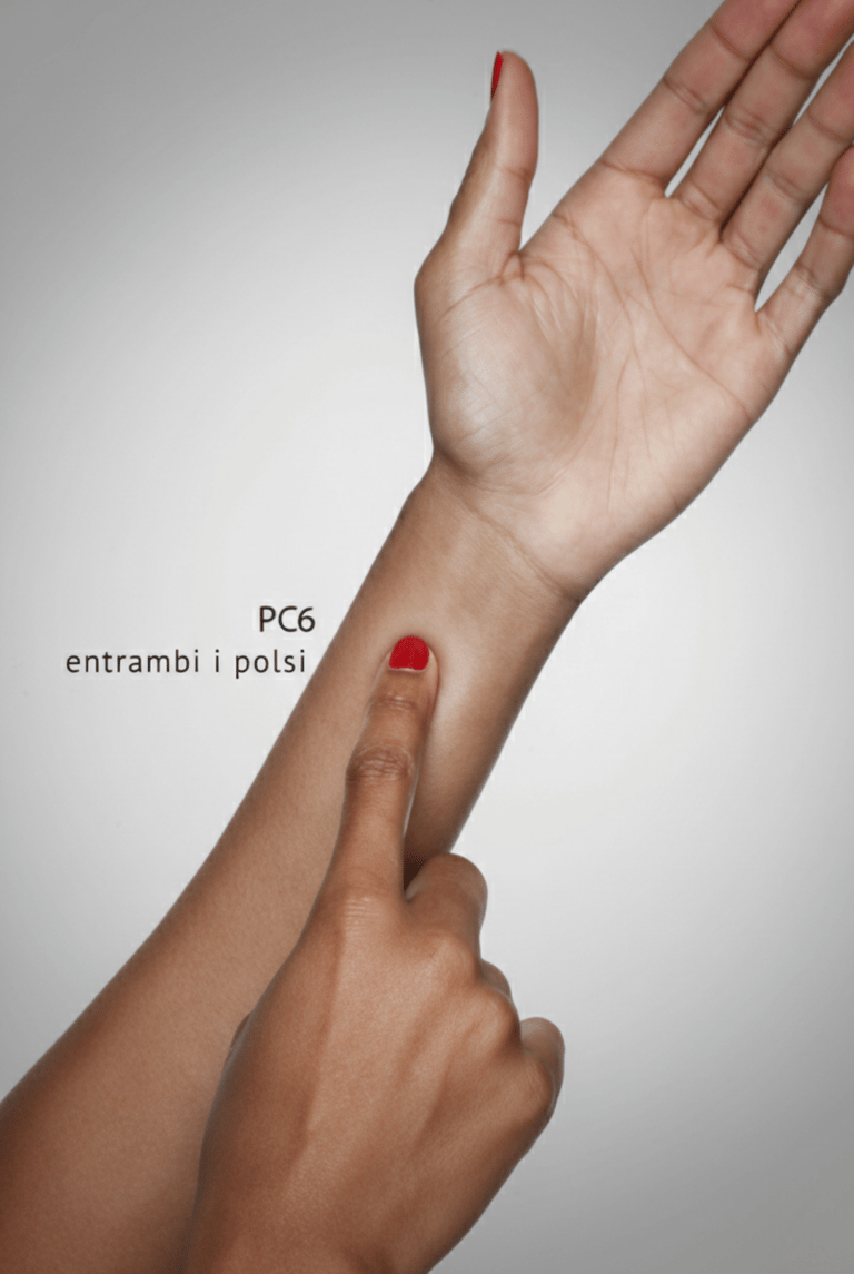 · PC 6 - Interno avambraccio, circa 3 dita sotto il polso, tra i due tendini centrali