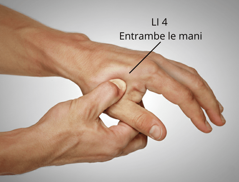 LI4 (mano – tra pollice e indice, entrambi i lati)