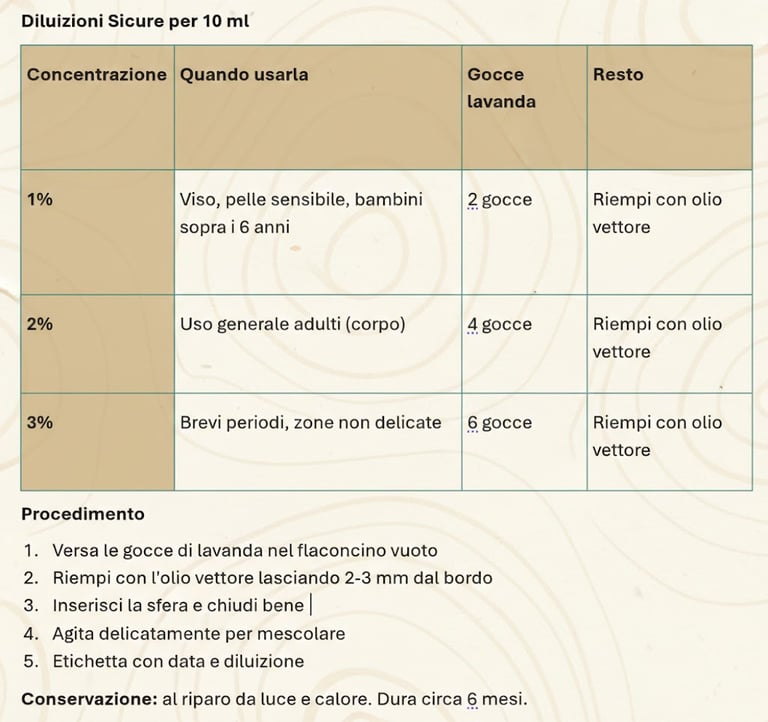 · Usa la lavanda solo ben diluita (nel roll-on già preparato correttamente).