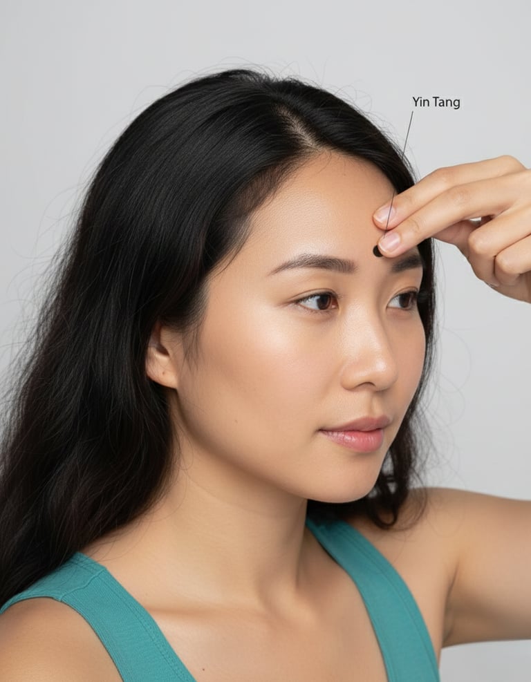 1. Yin Tang → 1 minuto (respira lento e profondo)